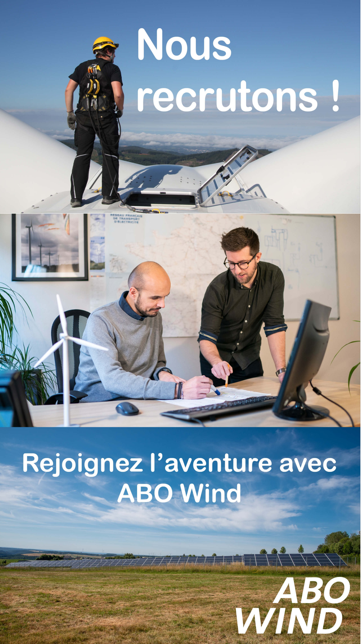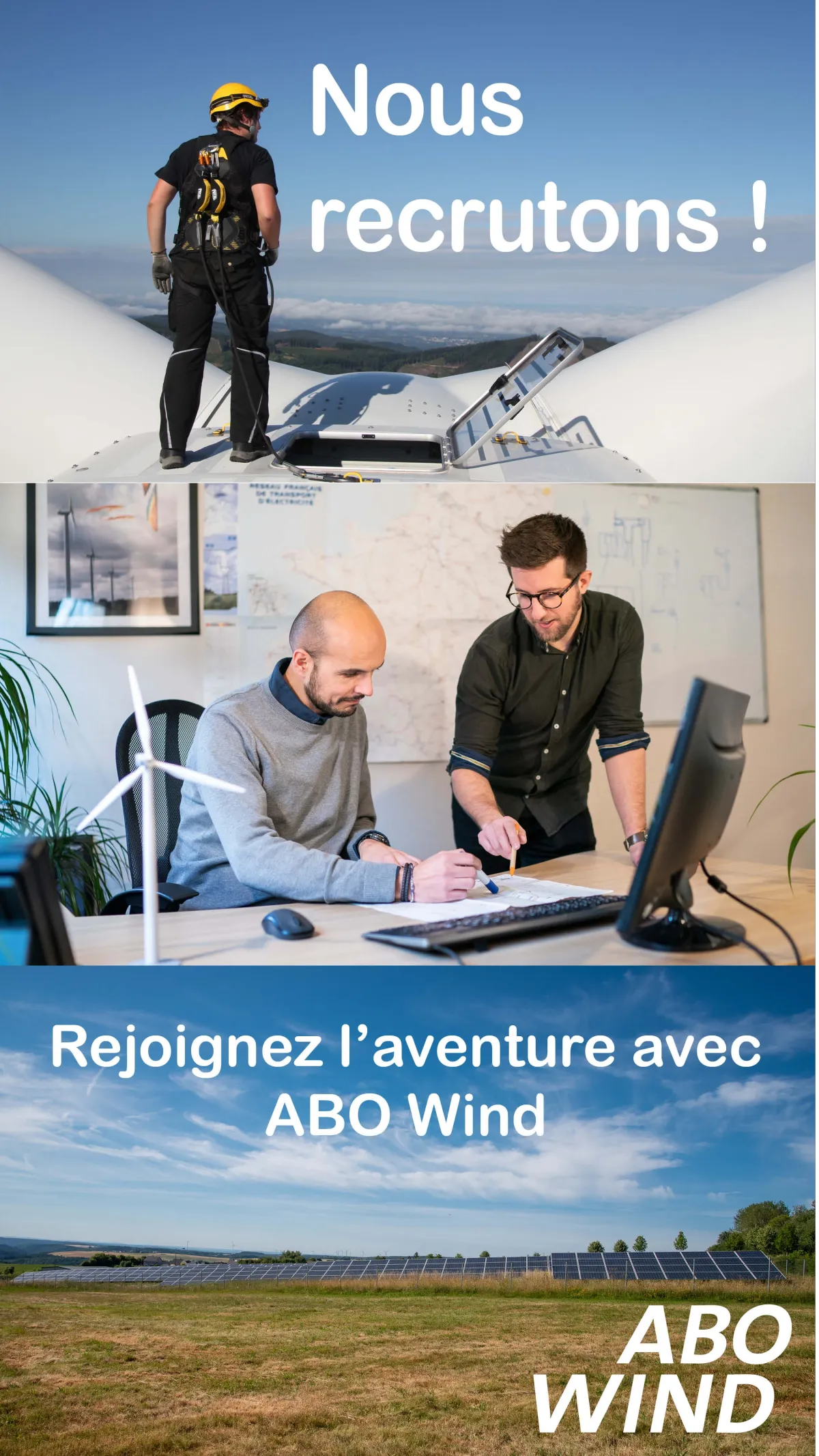 ABO Wind, en tant que spécialiste européen du développement clés en main de projets d’Energies Renouvelables (EnR) réalise toutes les prestations nécessaires du parc: développement, construction, montage financier, mise en place du parc, exploitation et renouvellement. Un interlocuteur unique tout au long du projet. Ses équipes d’experts et de spécialistes dans différents domaines d’activités, développent des projets EnR innovants et à la pointe des connaissances et évolutions technologiques.